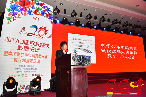 11月9日,與 2017中國民族餐飲發展大會同期舉辦了中國烹飪協會清真委員會成立二十周年慶典活動。1997年9月,由國家民族事務委員會、中國烹飪協會、中國伊斯蘭教協會共同發起的中國烹飪協會清真烹飪專業委員會在北京正式成立。在20年的奮進歷程中,為大力弘揚中國清真美食文化,加快促進民族餐飲產業發展發揮了積極引領和推動作用,被國務院表彰為“全國民族團結先進模范集體”,成為引領中國清真餐飲發展的先鋒隊。